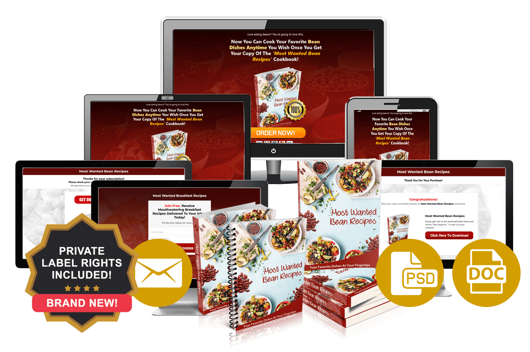 50 unique Bean recipes included, plus complete table of contents .. ready to publish with commercial use and private label rights.